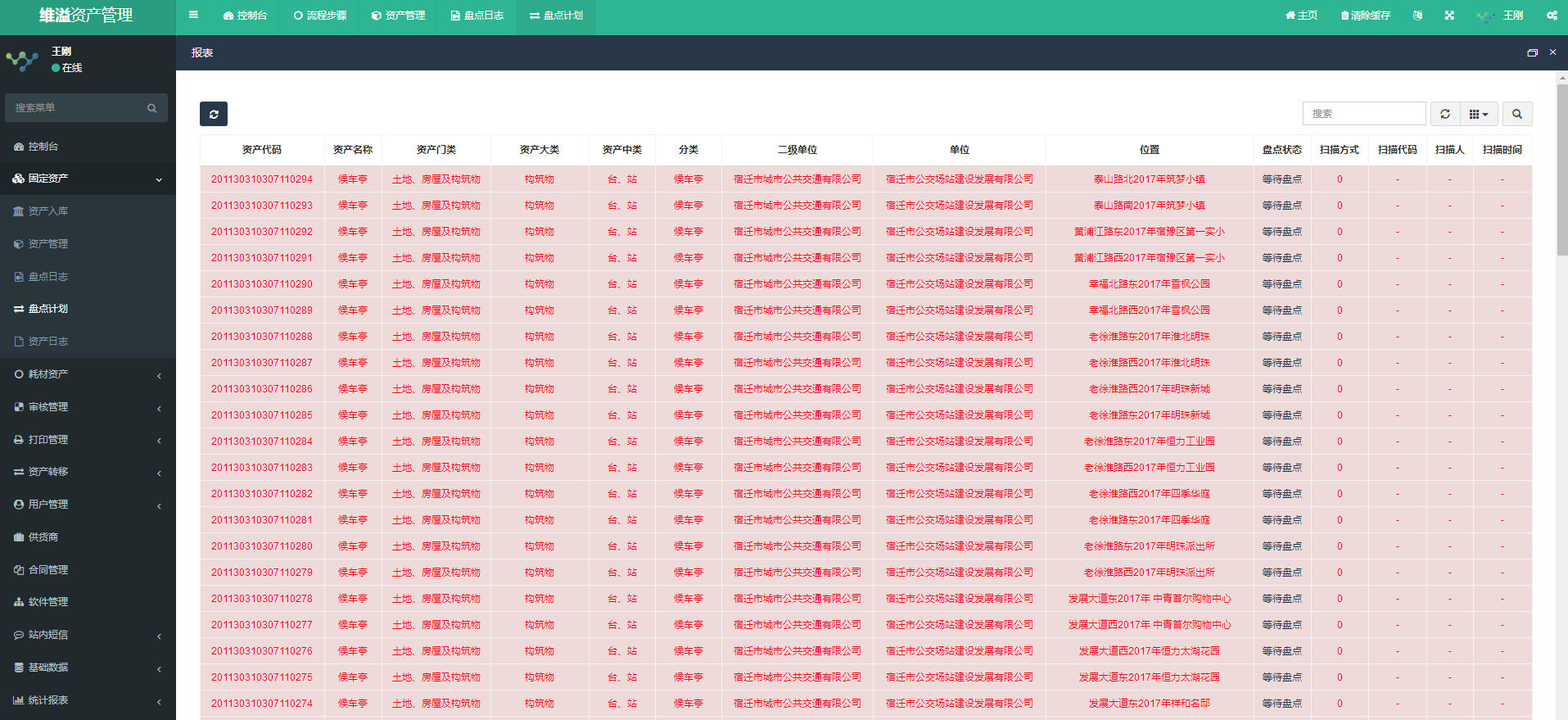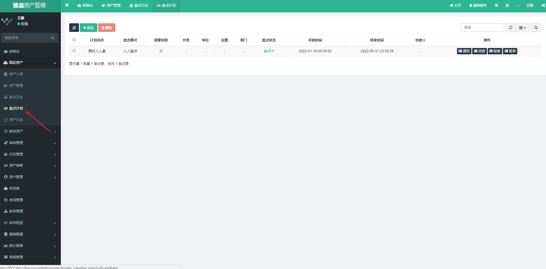 点击固定资产模块的盘点计划菜单,弹出盘点计划管理页面。