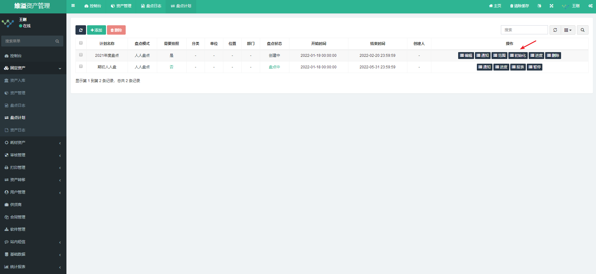 计划新建并设置完成后,需进行初始化,盘点计划即可启动。