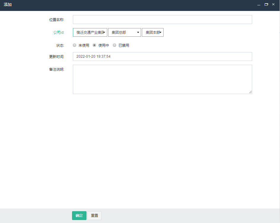 在资产管理过程中,点位的概念尤为关键。一个封闭的区域为一个点位,一个点位中有多件资产。如单位出现新增的独立封闭空间,需在系统内添加点位,具体步骤为:点击页面“添加”按钮,按页面提示进行信息录入,点击“确定”按钮即可。文档更新时间: 2022-01-20 19:38 作者:王刚